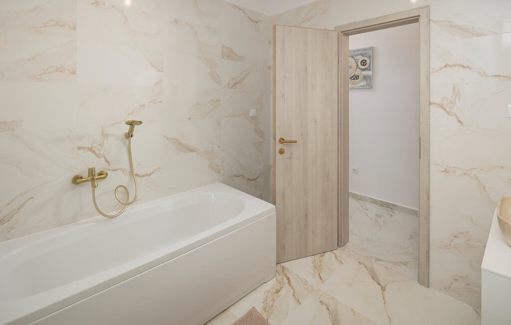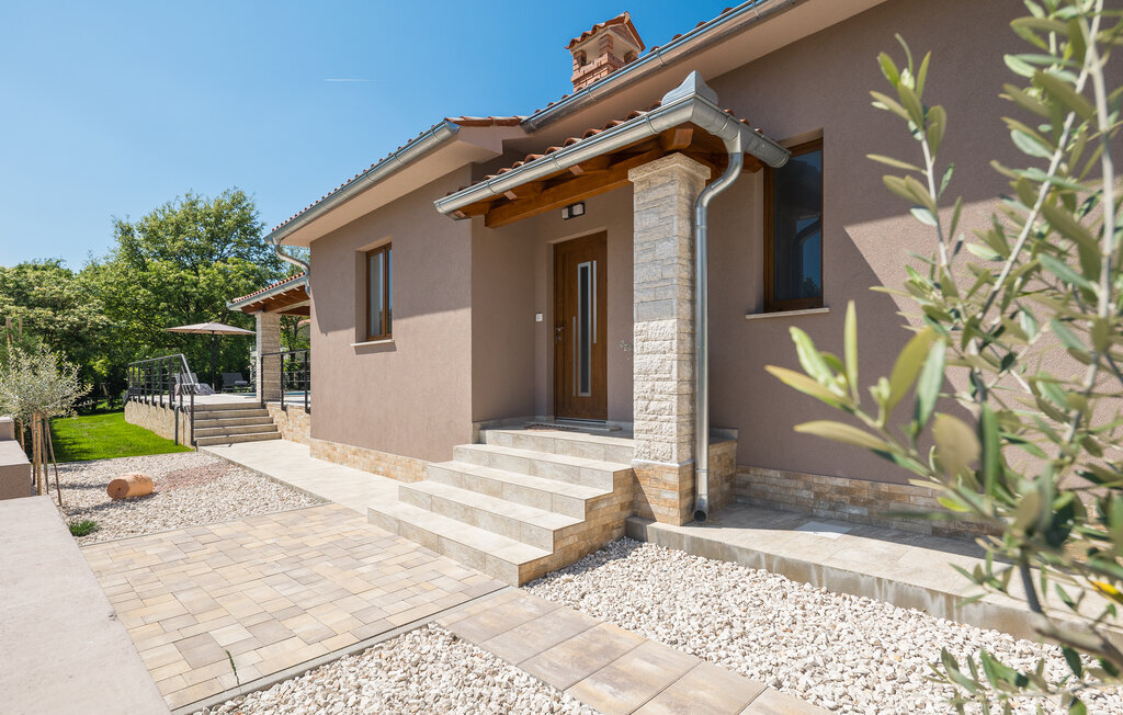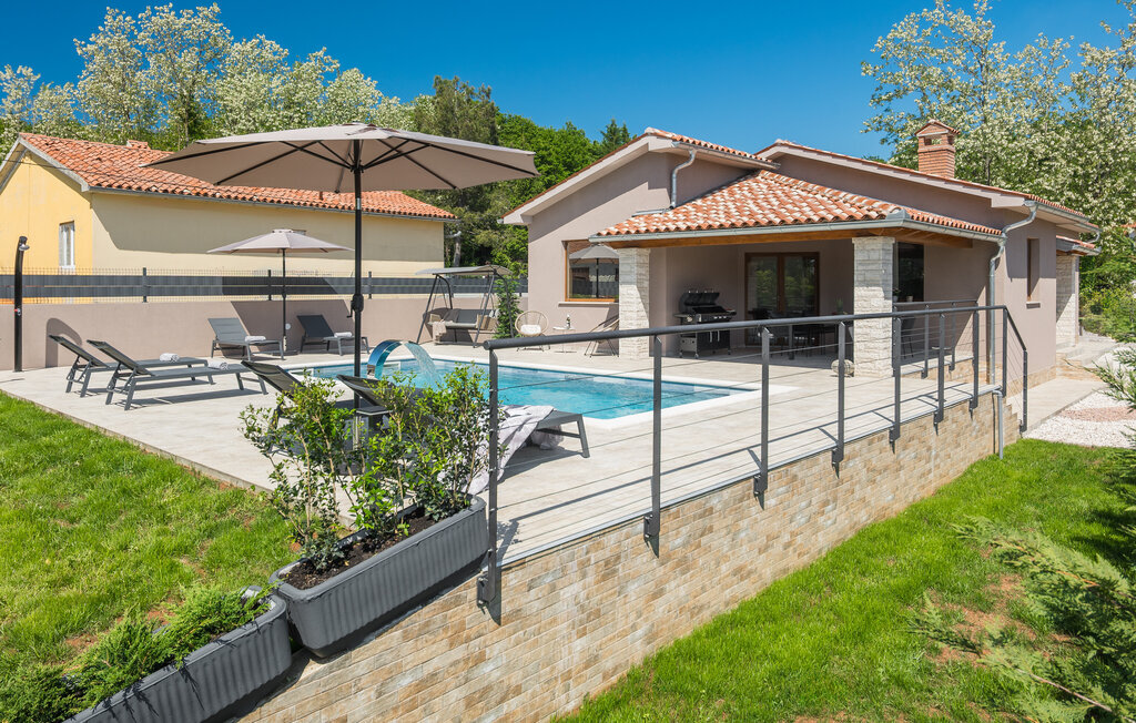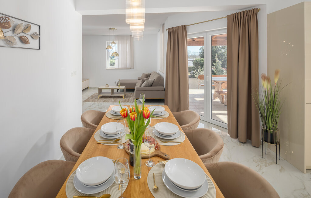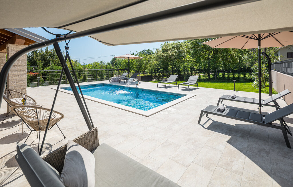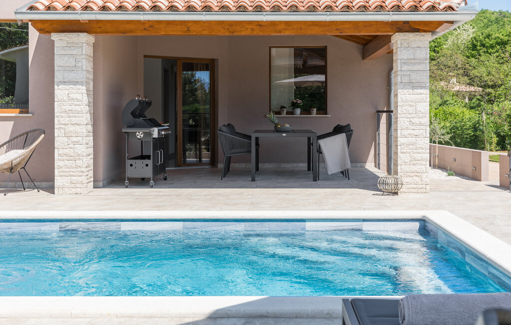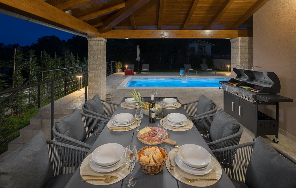 À l'extérieur, une piscine ensoleillée entourée d'une terrasse spacieuse vous attend. Commencez par prendre un copieux petit déjeuner en plein air, puis plongez dans l'eau rafraîchissante ou détendez-vous sur l'une des chaises longues. Terminez la soirée autour d'un barbecue et d'un verre de vin croate.