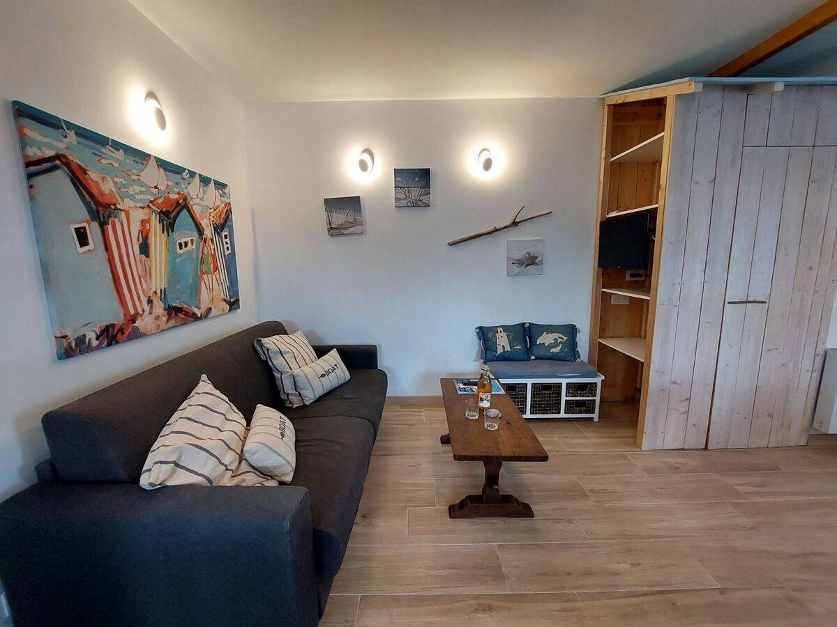 Complètement rénovée, aménagement agréable: séjour/salle à manger avec 1 divan-lit double (140 cm, longueur 190 cm), TV (écran plat).