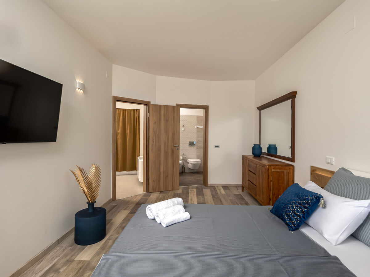 1 chambre avec 1 grand-lit (180 cm, longueur 200 cm).