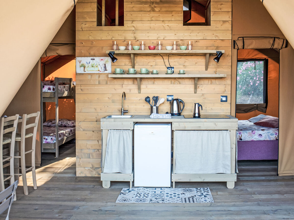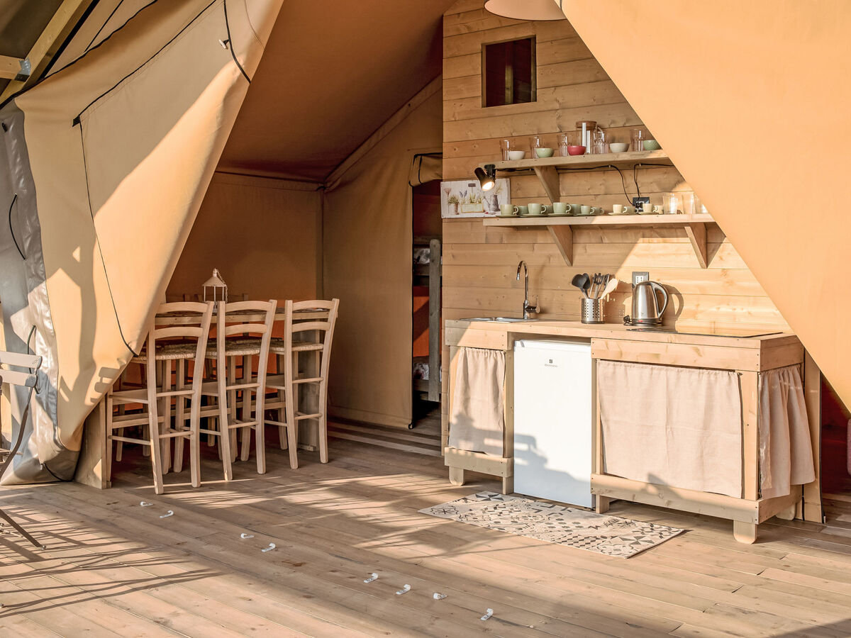 "Glampingtent Zeus", 4 pièces mobil home 32 m2, rez-de-chaussée surélevé.