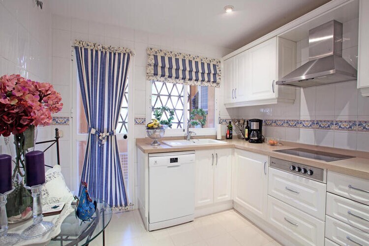 La cuisine indépendante, à vitrocéramique, est équipée avec réfrigérateur, micro-ondes, four, congélateur, lave-vaisselle, cafetière et grille pain.