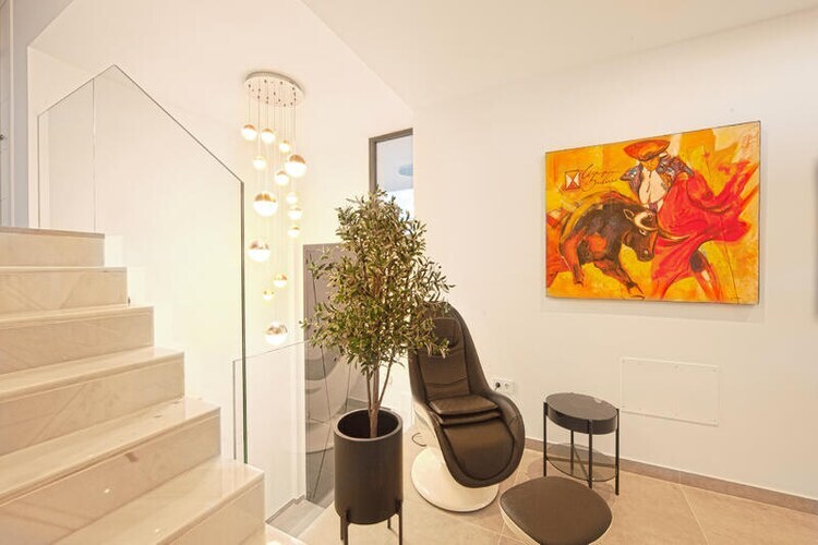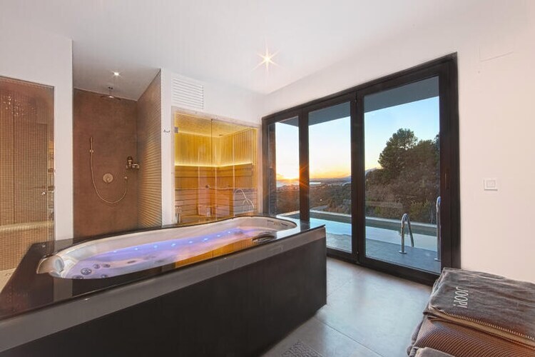 Elle dispose de jardin, mobilier de jardin, clôture, 225 m² de terrasse, lave-linge, sèche-linge, barbecue, fer à repasser, accès internet (wifi), sèche-cheveux, balcon, salle de sport, alarme, spa, chauffage central, climatisation dans tout le logement, piscine privée, piscine chauffée privée, garage même bâtiment, TV, tv satellite (Langues: Espagnol, Anglais, Allemand, Russe).