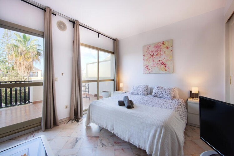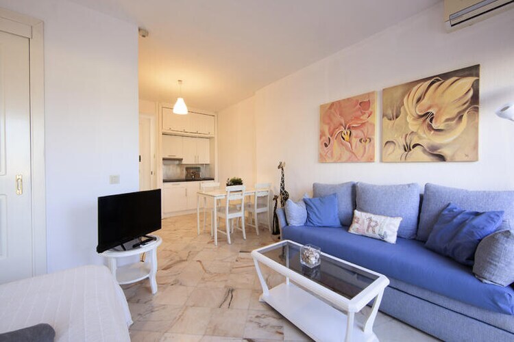 Well appointed south facing studio for rent in Romana Playa Elviria, Marbella. The studio is located in a beachfront complex and has a large open terrace to enjoy the sun.