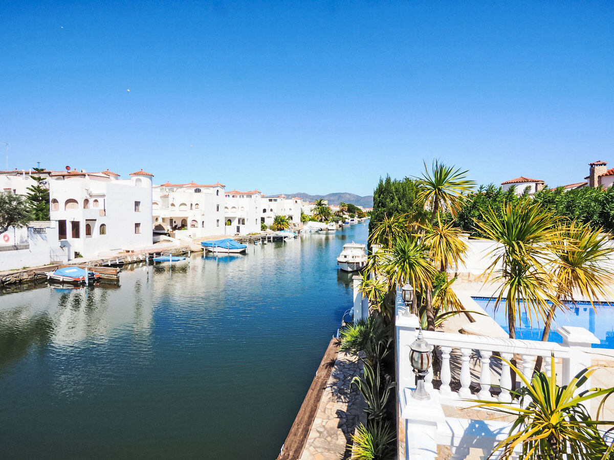 Dans le quartier de Francoli, à 2 km du centre d'Empuriabrava, situation tranquille, ensoleillée quartier résidentiel, à 2 km de la mer, à 2 km de la plage, à 800 m de la rivière, dans une impasse.
