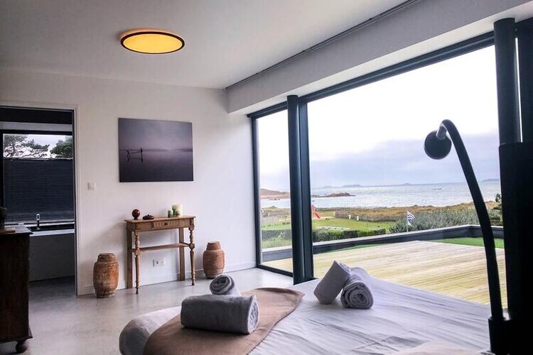 PORT BLANC, location d’une villa contemporaine d'exception pour 8/10 personnes à 2 pas de la plage des Dunes et vue grandiose sur la mer.
