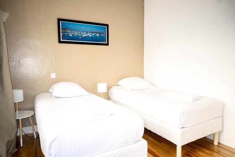- Chambre 4 (étage) : 2 lits simples (salle de bains avec WC à proximité).