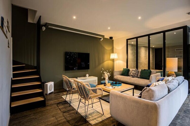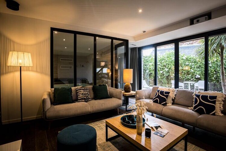 Les pièces à vivre ouvertes et confortables, sont hautement équipées. La cuisine avec son ilot central / espace repas et le salon s’ouvrent sur une cour fermée qui promet farniente et détente à l'abri des regards.