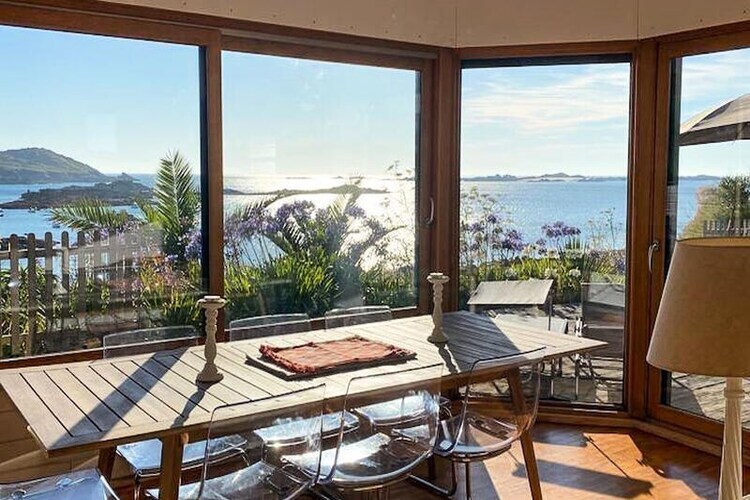 La villa peut accueillir 8 personnes avec ses 4 chambres. Les terrasses extérieures prolongent cet espace de vie côté mer.