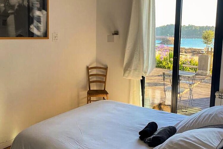 - Chambre 1 (rdc) : 1 lit 160 cm, baie donnant sur la terrasse, très jolie vue mer.