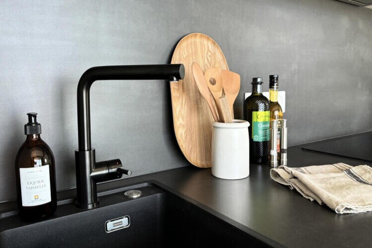 La cuisine américaine est entièrement équipée avec réfrigérateur, lave-vaisselle, four, micro-ondes et tout le nécessaire pour cuisiner. Le séjour lumineux est meublé avec goût et dispose d'une télévision avec chaînes internationales.
