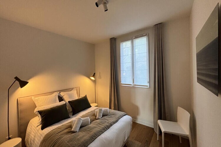 L'appartement dispose d'un salle d'eau avec douche et lave-linge séchant. Les 3 lits (1 lit double et 2 lits simples) permettent d'héberger confortablement jusqu'à 4 personnes.