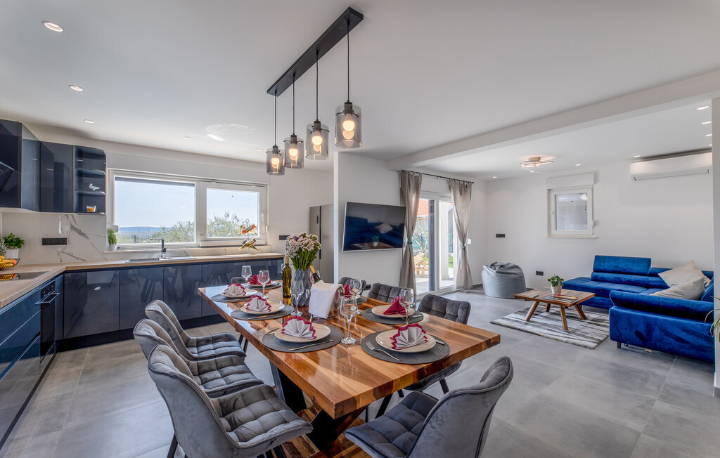 Faites vos valises et réjouissez-vous d'une pause inoubliable dans cette maison de vacances confortable près de la côte adriatique baignée de soleil. A l'intérieur, une ambiance claire et spacieuse vous attend ainsi qu'une cuisine ouverte dans laquelle vous pourrez concocter ensemble des spécialités culinaires. Après des repas élégants, installez-vous sur le canapé confortable et regardez votre série préférée en streaming.