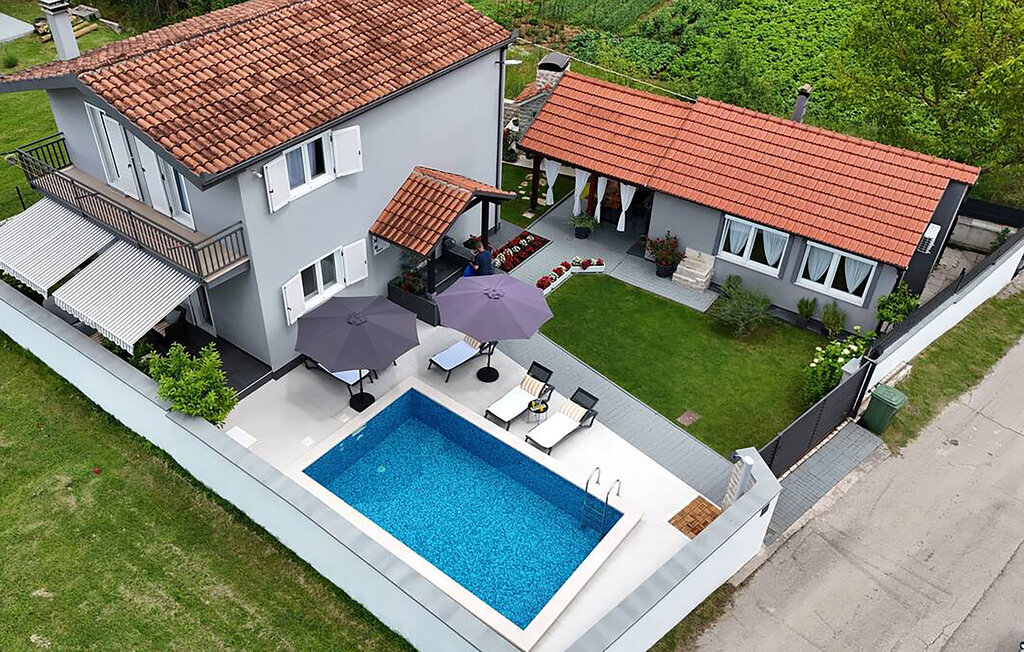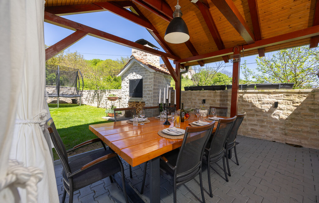 L'espace extérieur, polyvalent et bien agencé, est entièrement conçu pour profiter du climat méditerranéen. Commencez la journée par un plongeon dans l'eau fraîche, profitez d'un long bain de soleil sur les chaises longues et utilisez le barbecue en pierre pour un barbecue convivial le soir, pendant que vos enfants se défoulent en jouant au football ou au badminton sur la pelouse bien entretenue.