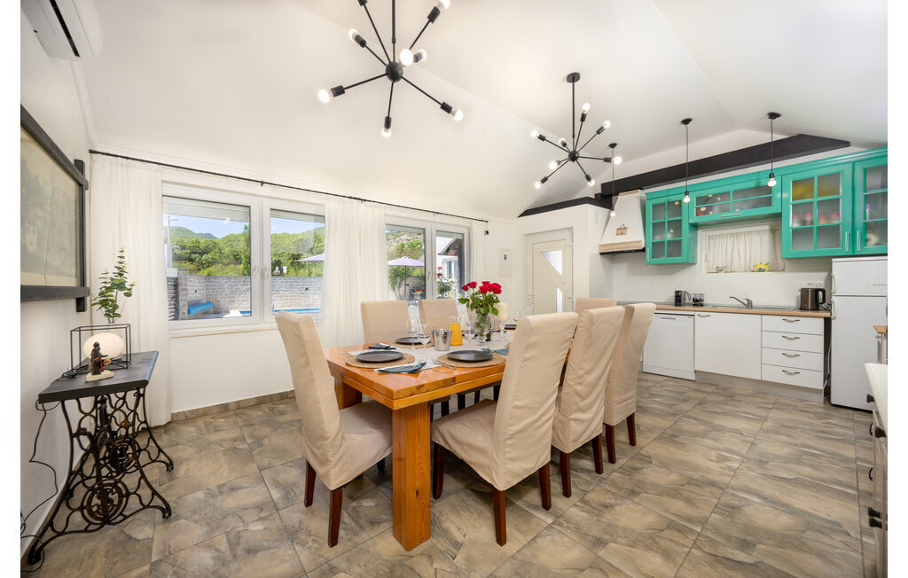 Faites vos valises et réjouissez-vous de vous reposer avec vos proches dans cette maison de vacances idéale pour les familles. Célébrez des soirées culinaires conviviales dans la cuisine entièrement équipée et savourez vos créations dans la salle à manger élégamment éclairée. Passez du temps ensemble lors d'une soirée de jeux ou installez-vous confortablement sur le canapé devant la télévision après une journée bien remplie.