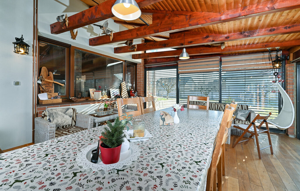 Entrez et laissez-vous séduire par l'intérieur confortable et élégant de cette spacieuse maison de vacances. Des plafonds en bois chaleureux, un éclairage d'ambiance et un mobilier choisi créent ici une atmosphère confortable. Réjouissez-vous des repas conviviaux, détendez-vous dans le jacuzzi ou le sauna, discutez au coin du feu ou regardez votre série préférée en streaming. Organisez de joyeuses soirées de jeux ou plongez-vous dans un bon livre dans l'un des nombreux lieux de retraite accueillants.