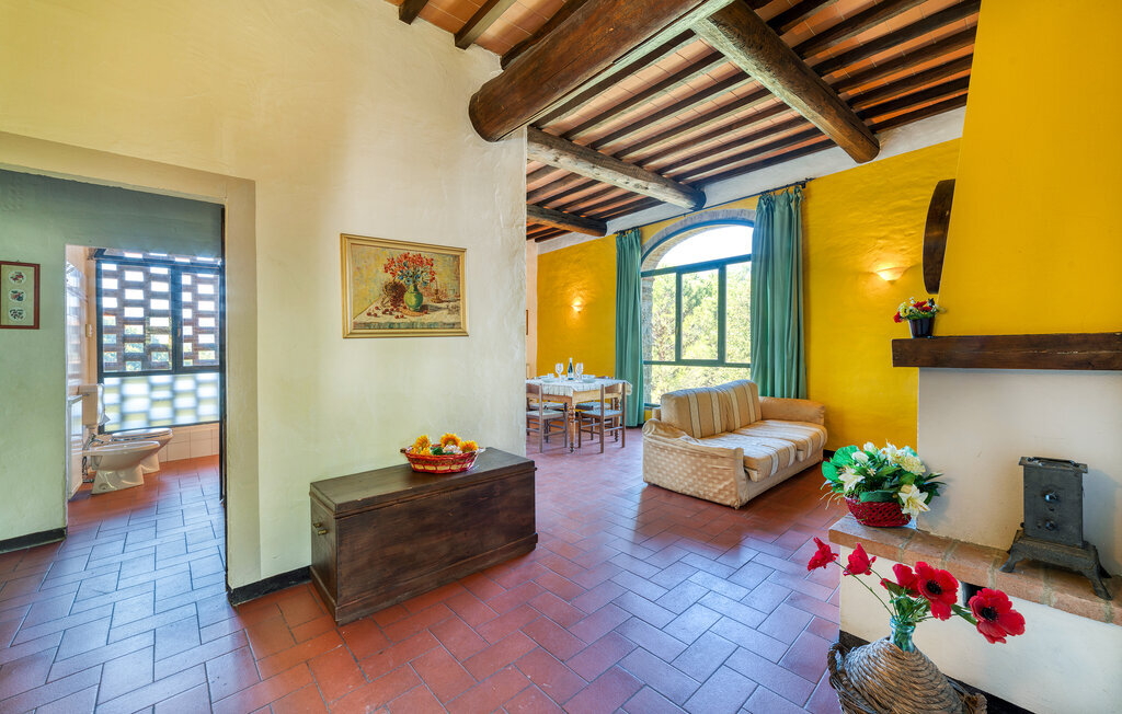 Cette charmante maison de vacances colorée à Dicomano, entourée de douces collines et d'une verdure luxuriante, vous offre l'occasion de vous évader du quotidien. Profitez du confort et de la tranquillité de cette authentique maison de campagne tout en bénéficiant des commodités modernes. La maison de vacances est aménagée avec soin et vous invite à vous y attarder. Le salon spacieux avec ses poutres en bois traditionnelles et ses sols en terre cuite dégage une ambiance chaleureuse. Profitez de la cheminée ouverte pour passer des soirées agréables ou préparez de délicieux plats avec des ingrédients régionaux dans la cuisine ouverte. La cuisine-salle à manger vous offre suffisamment de place pour des repas en commun, au cours desquels vous créerez des moments inoubliables avec votre famille ou vos amis.