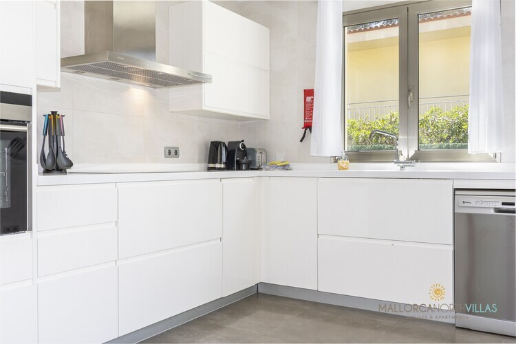 La villa dispose d'une cuisine indépendante entièrement équipée avec des appareils électroménagers modernes, dont une plaque de cuisson vitrocéramique, un réfrigérateur, un micro-ondes, un four, un congélateur et un lave-vaisselle. Vous pourrez également utiliser des appareils électroménagers plus petits comme une cafetière, un grille-pain, une bouilloire et un presse-agrumes, pour une préparation des repas simplifiée.