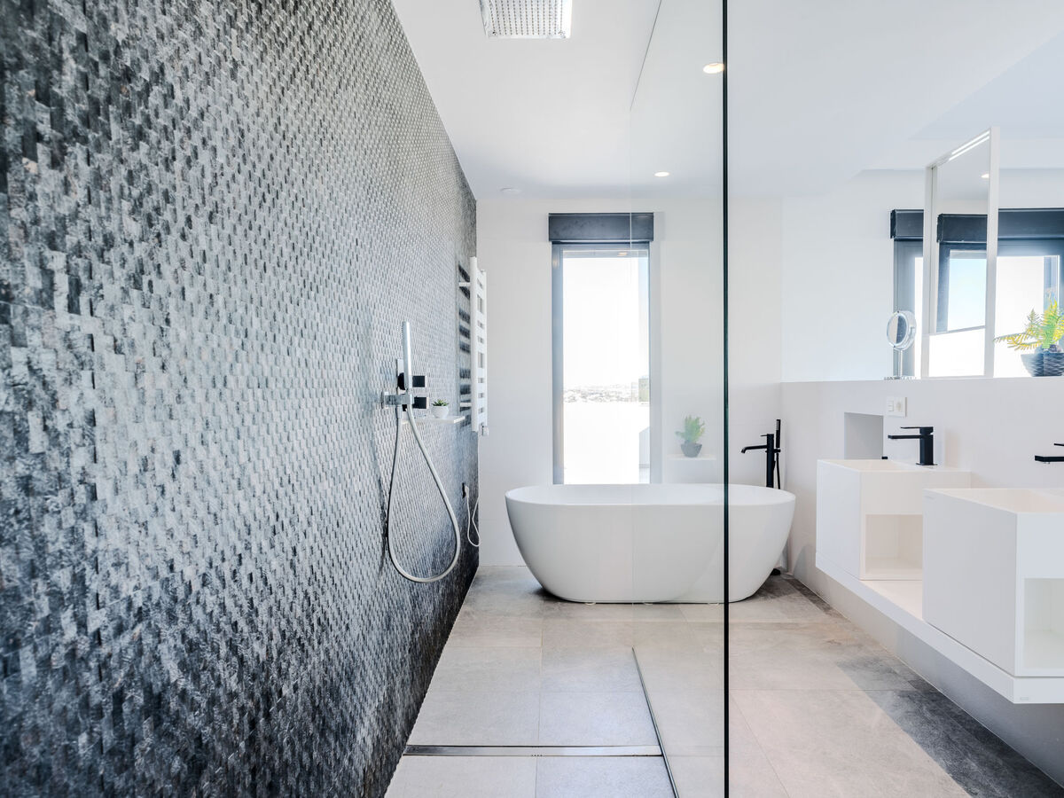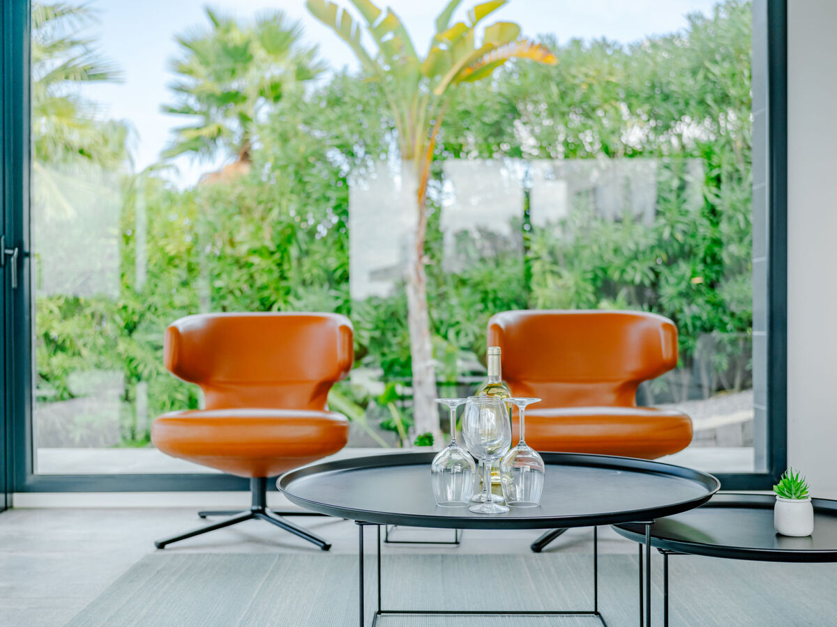 Spacieux et clair, aménagement très moderne et de style: séjour/salle à manger avec TV (satellite), air-conditionné et chauffage à air chaud.