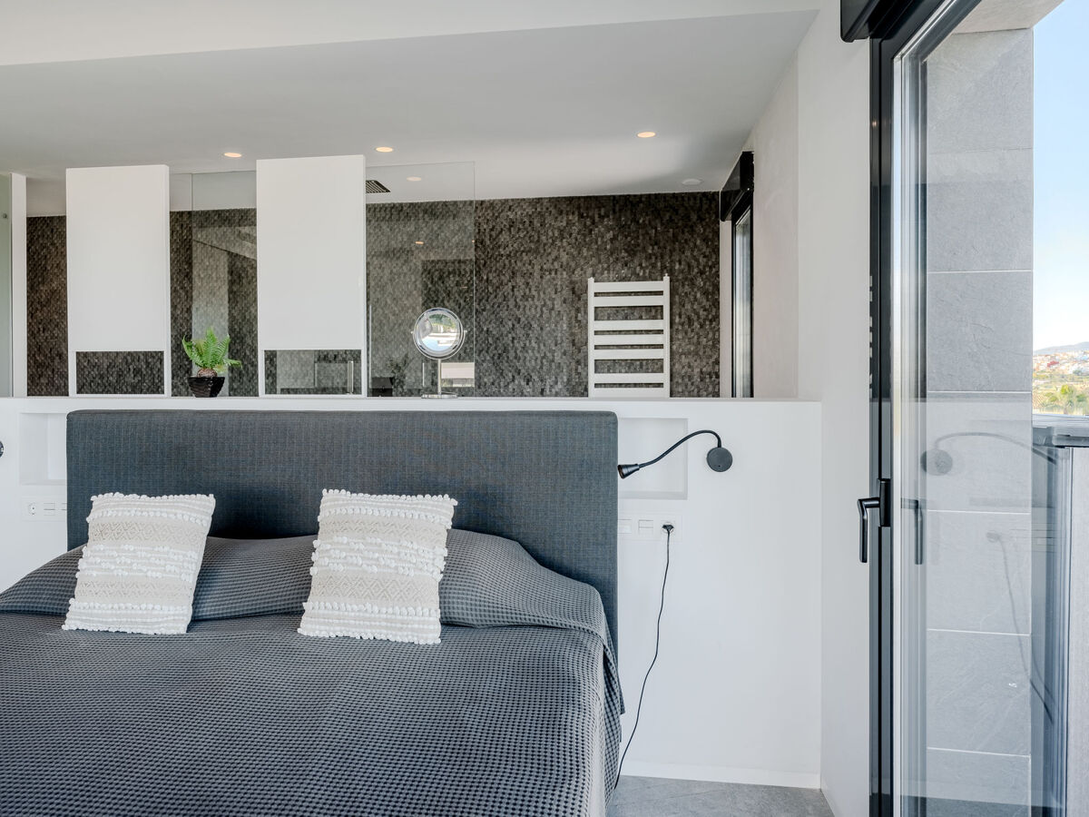 À l'étage supérieur: 1 chambre avec Dressing avec 1 grand-lit (180 cm, longueur 200 cm), bain/douche/WC, double vasque, air-conditionné et chauffage à air chaud.