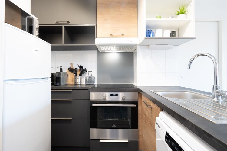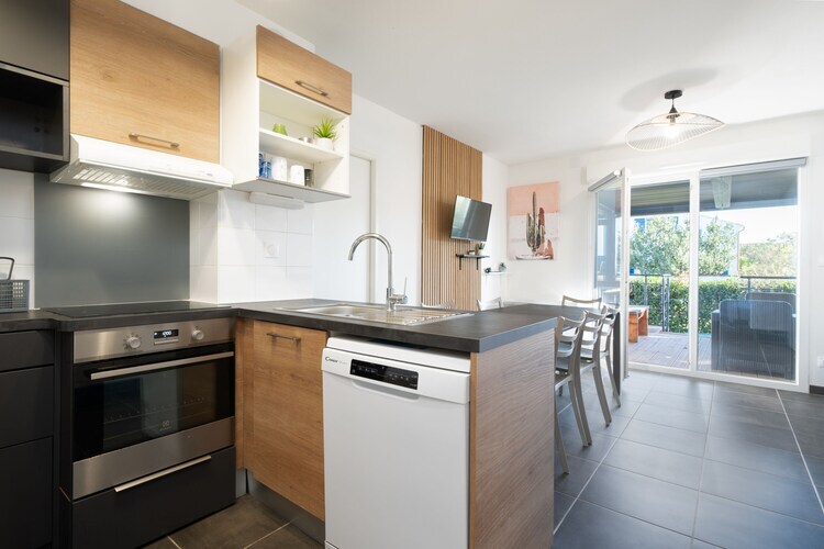 À l'intérieur, la cuisine américaine entièrement équipée comprend un réfrigérateur, un micro-ondes, un four, un congélateur, un lave-vaisselle, une cafetière, une bouilloire et tous les ustensiles nécessaires. Que vous prépariez un petit-déjeuner rapide ou un dîner complet, tout est à portée de main pour des vacances balnéaires agréables et réussies.