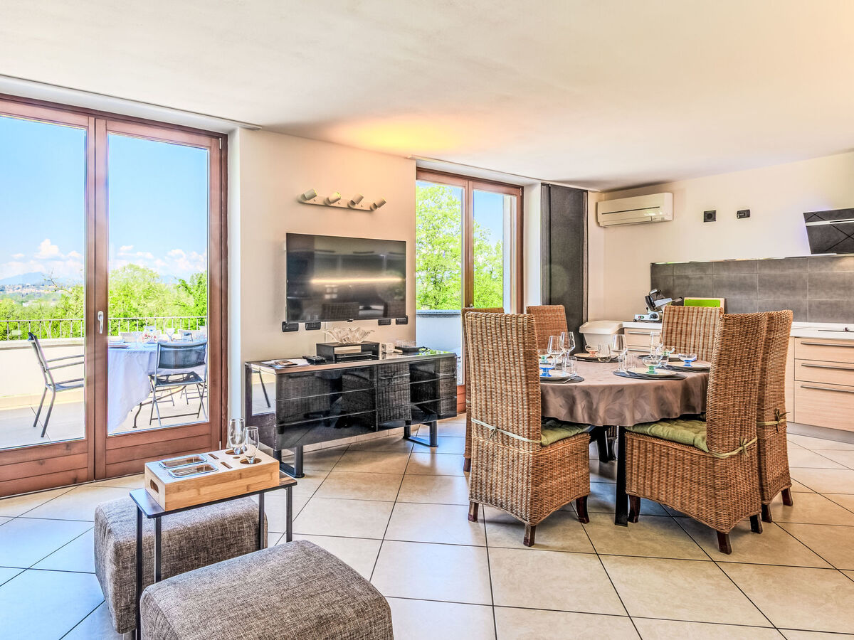Aménagement de bon goût et plaisant: séjour/salle à manger avec table pour les repas et TV.