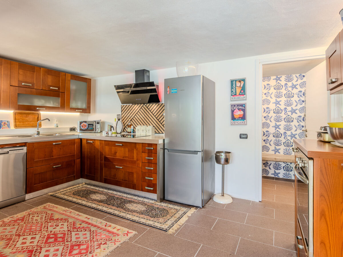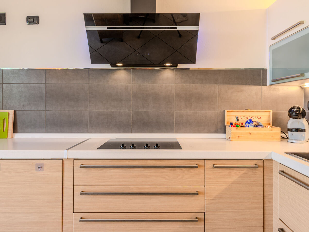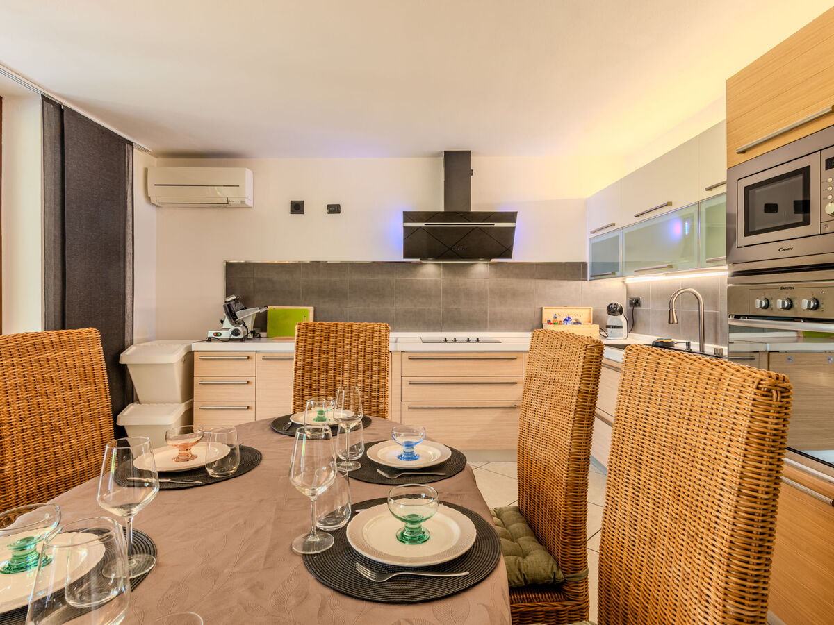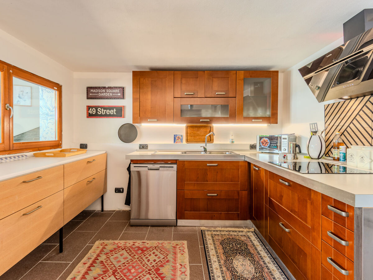 Cuisine ouverte (four, lave-vaisselle, 4 plaques à induction, grille-pain, bouilloire électrique, micro-ondes).