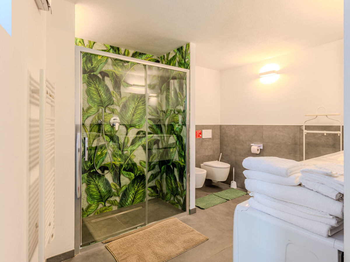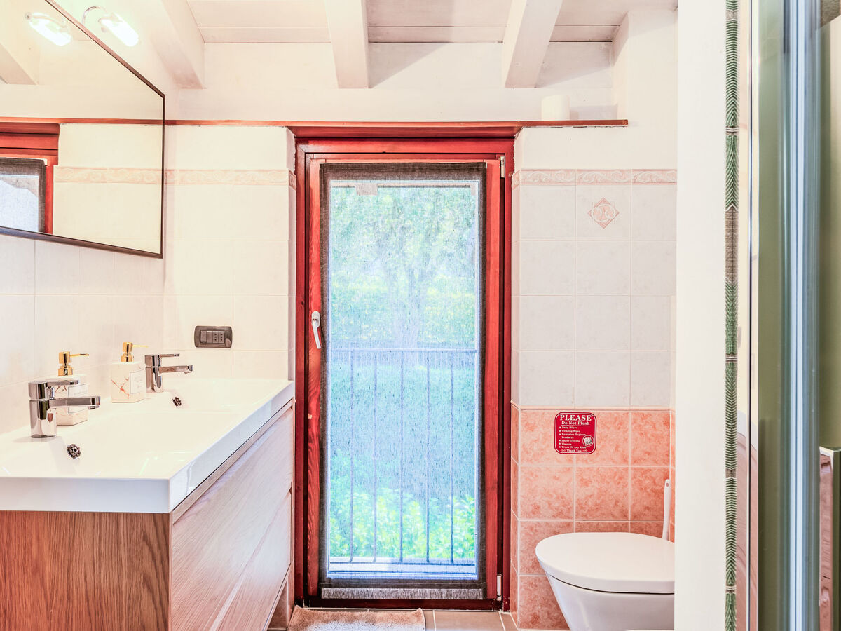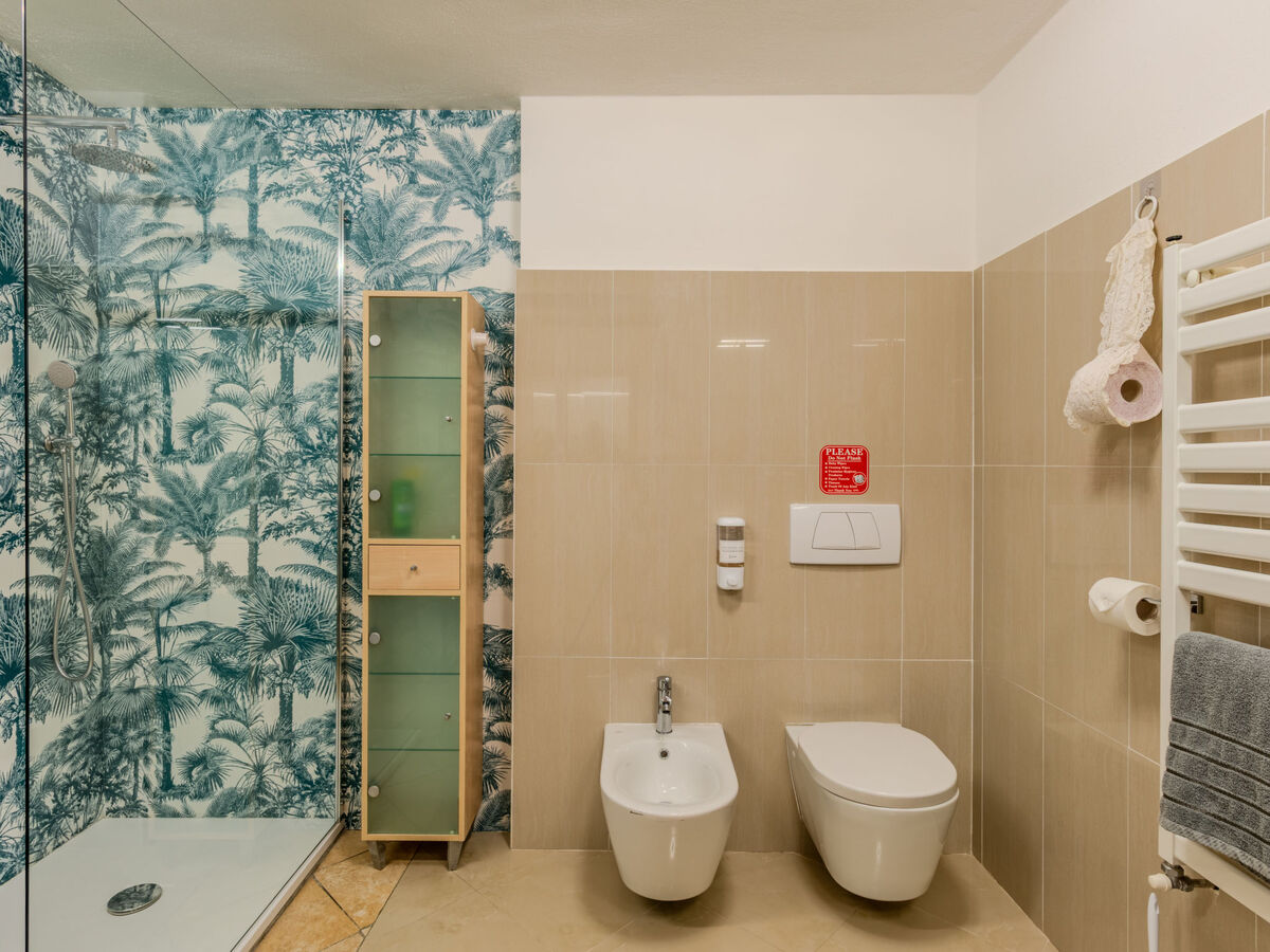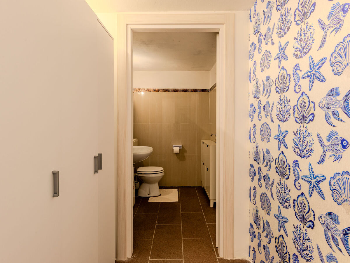 À l'étage inférieur: (escalier extérieur) 1 grande chambre avec 1 lit, 1 lit double, douche/bidet/WC et TV.