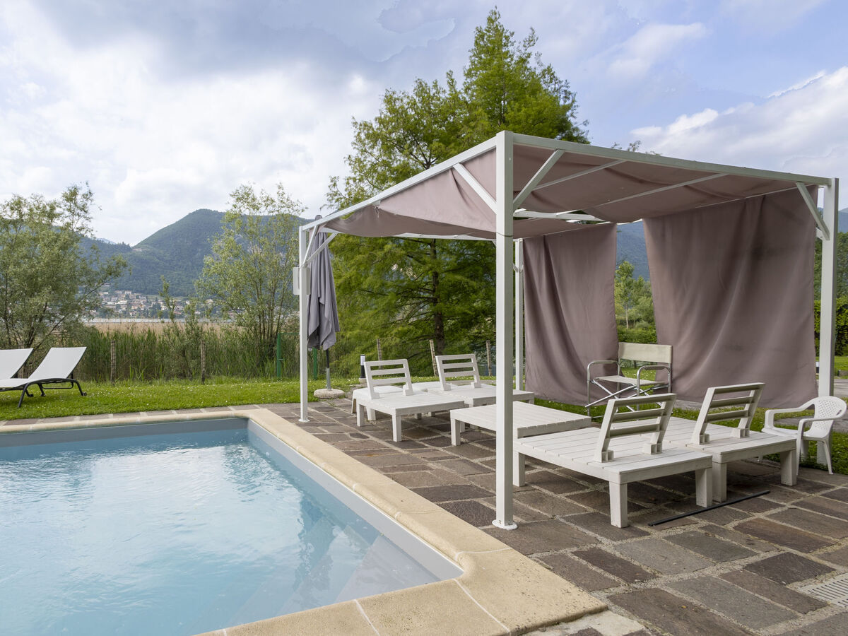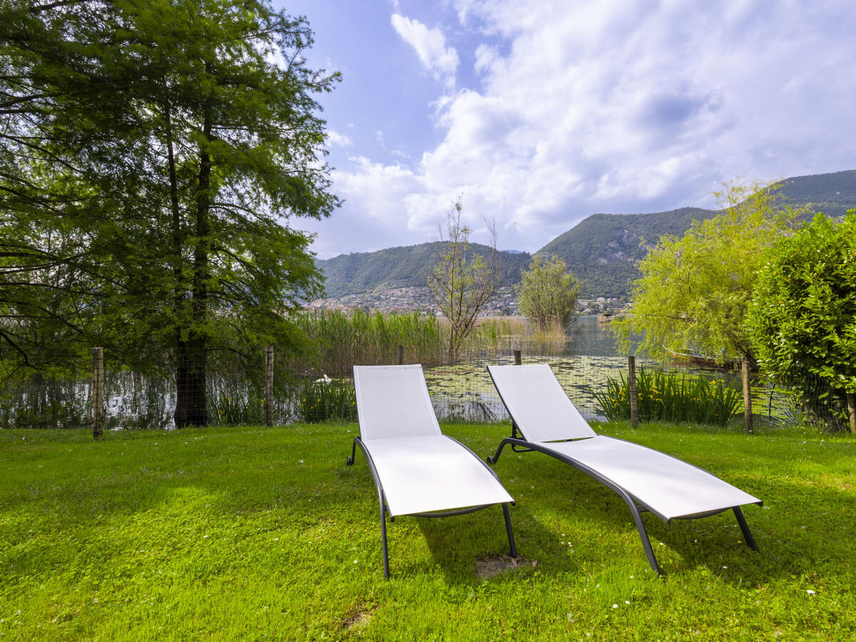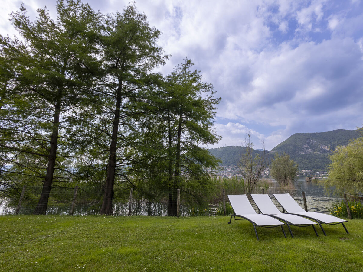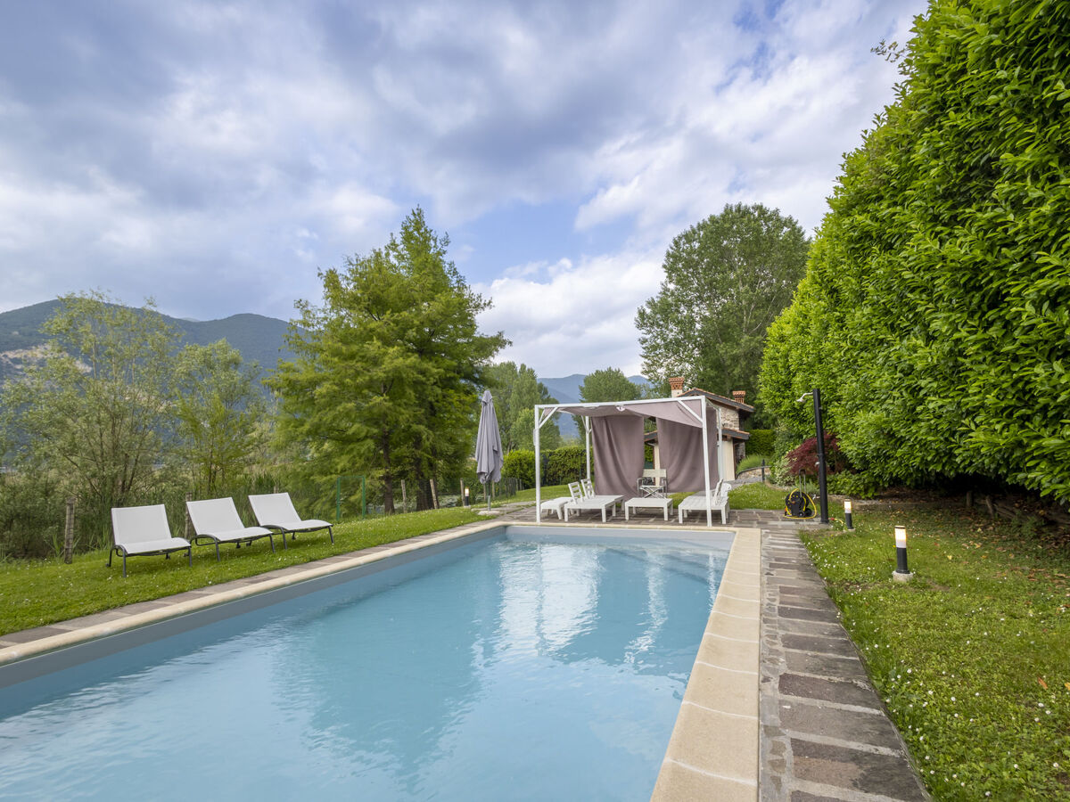 Très belle vue panoramique sur le lac, la piscine et le jardin.