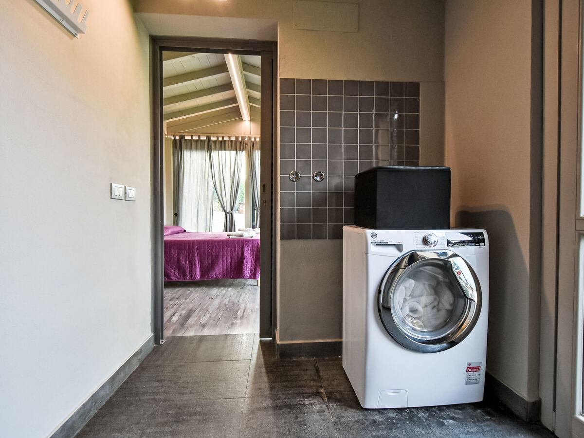 A disposition: lave-linge, sèche-linge, fer à repasser, chaise haute pour enfant, lit bébé, sèche-cheveux.
