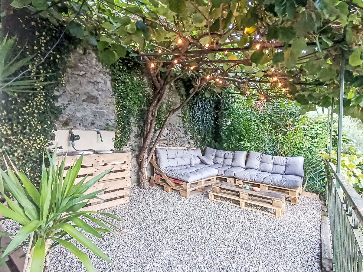 A usage privé: grand jardin sur plusieurs niveaux plantes et arbres.