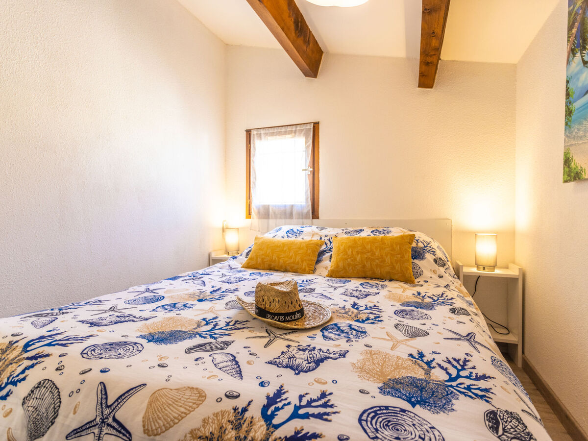 À l'étage supérieur: 1 chambre avec 1 grand-lit (140 cm, longueur 190 cm).