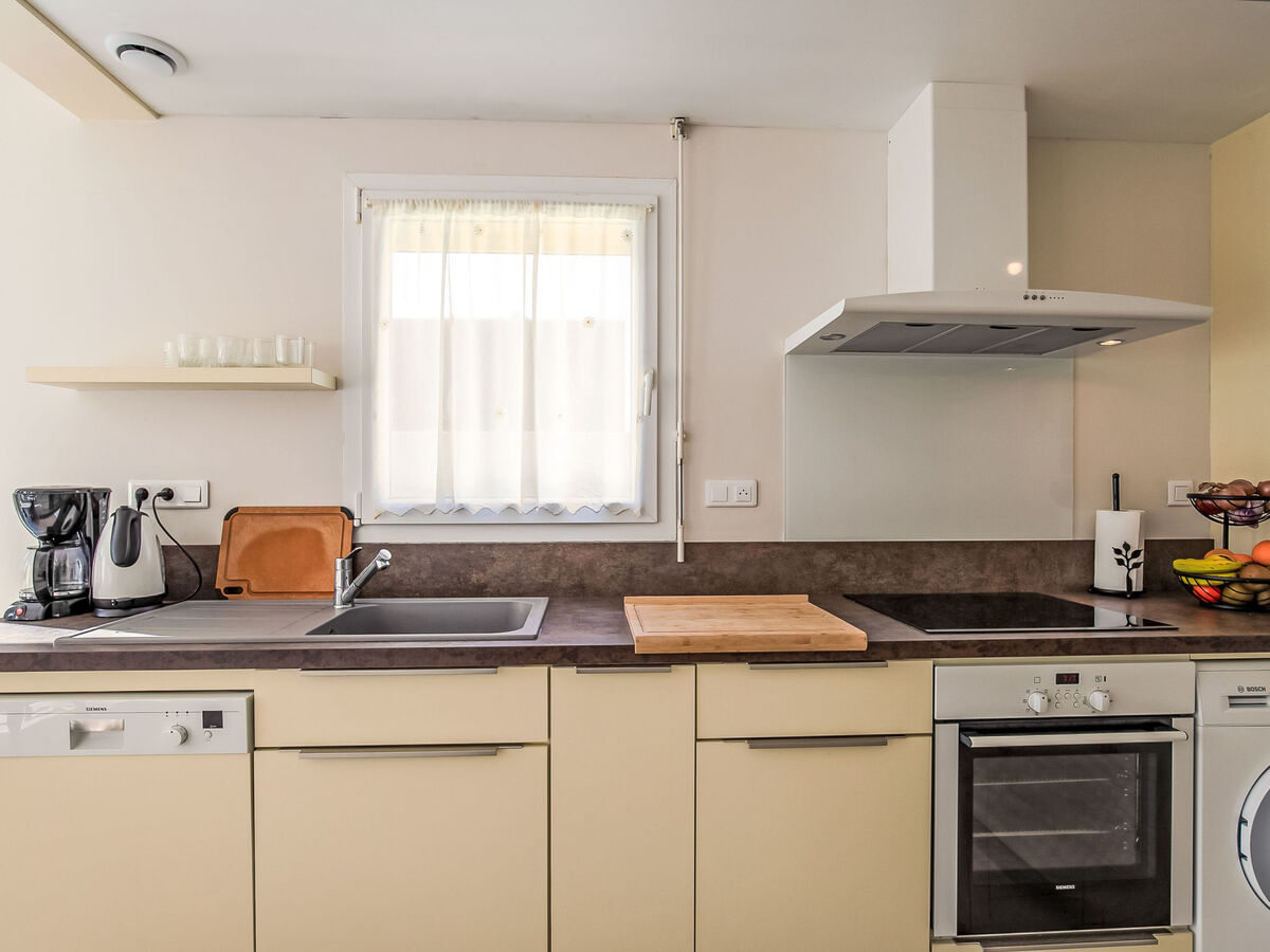 Cuisine ouverte (four, lave-vaisselle, 3 plaques à induction, grille-pain, bouilloire électrique, micro-ondes, congélateur, cafetière électrique, Capsules pour machine à café (L'OR Barista) (NON INCLUSES)).