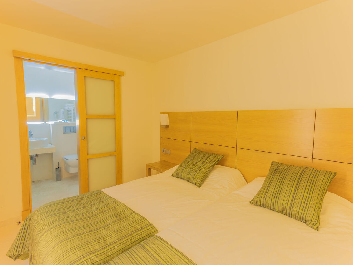 1 grande chambre double avec 2 lits (90 cm, longueur 200 cm), douche/WC et air-conditionné.