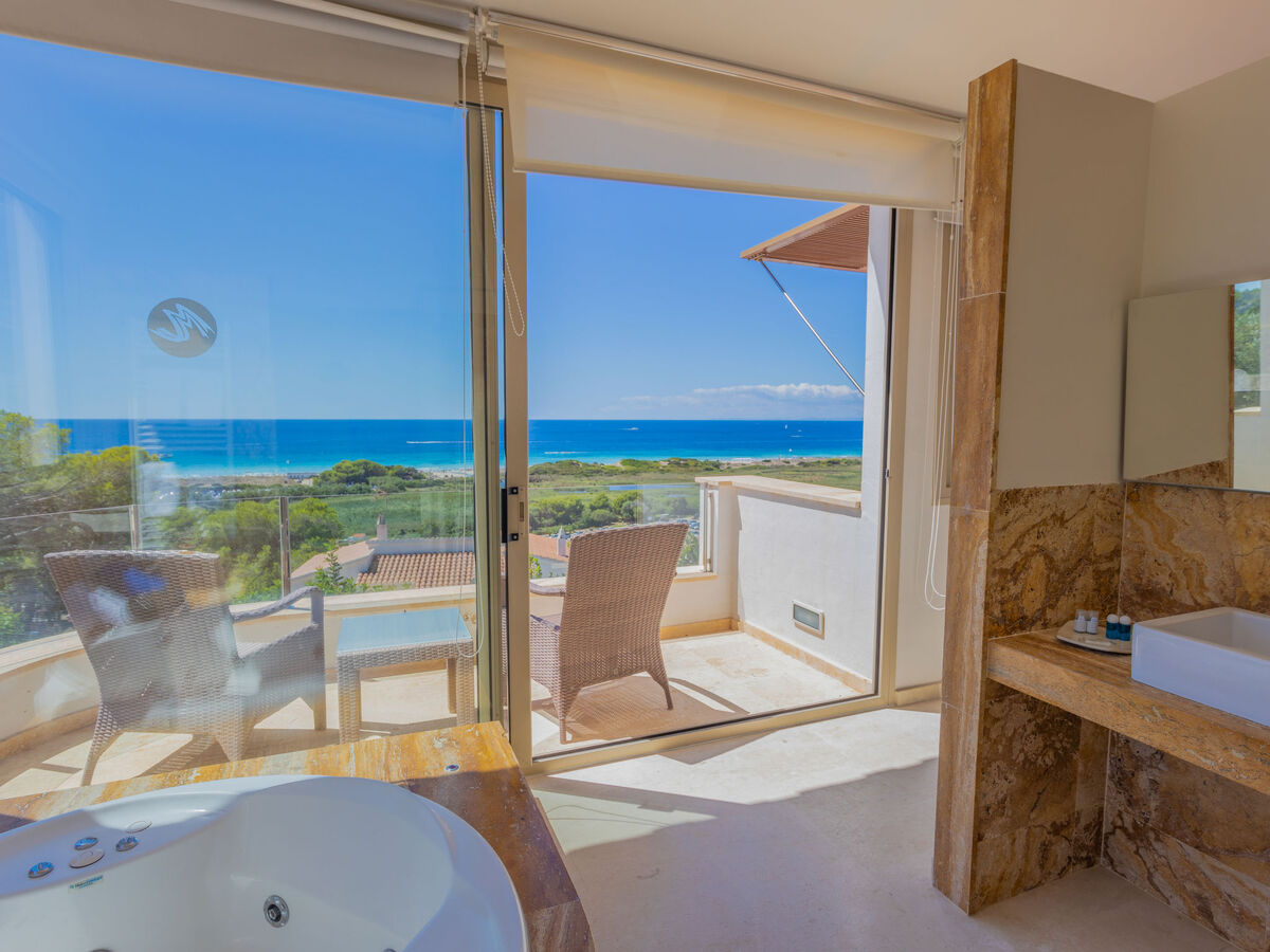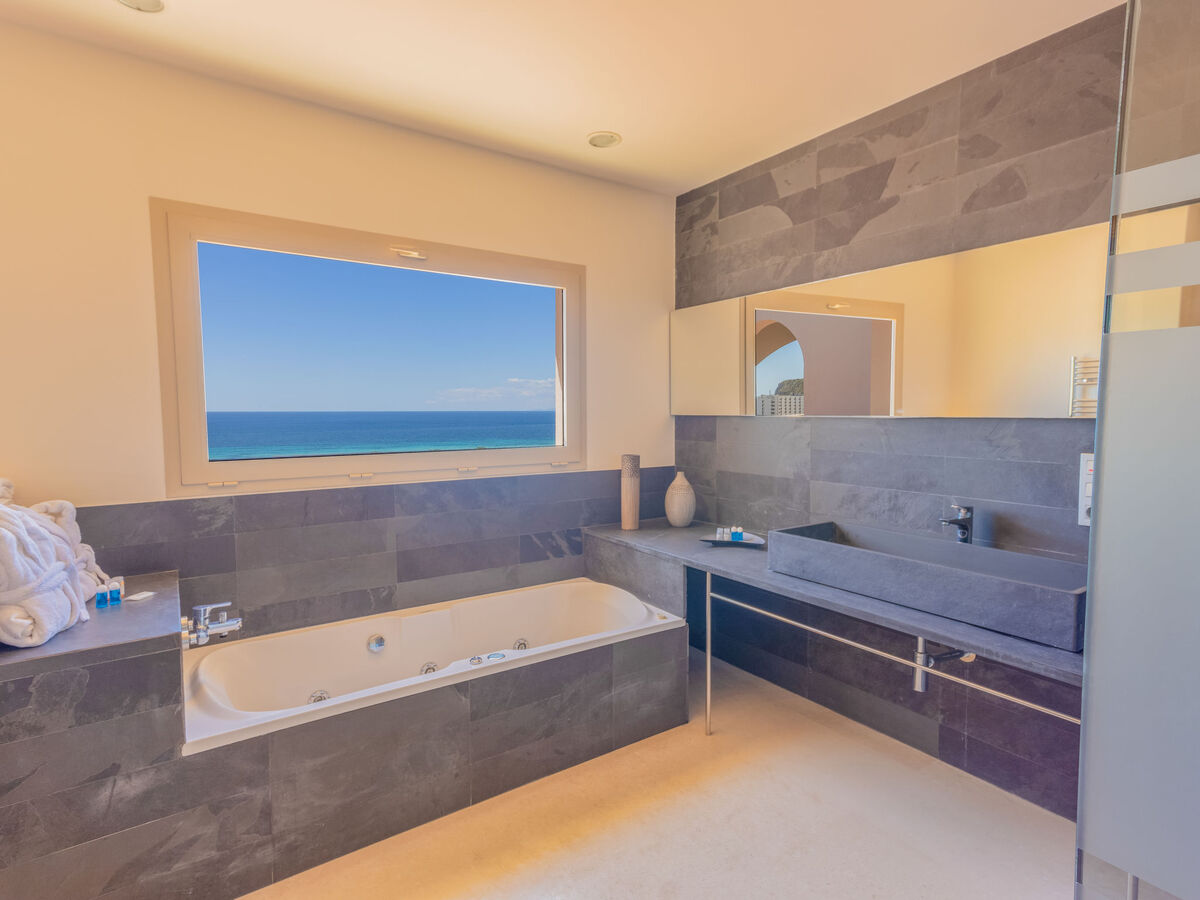 Très belle vue sur la mer, la piscine, le jardin, les alentours et la localité.