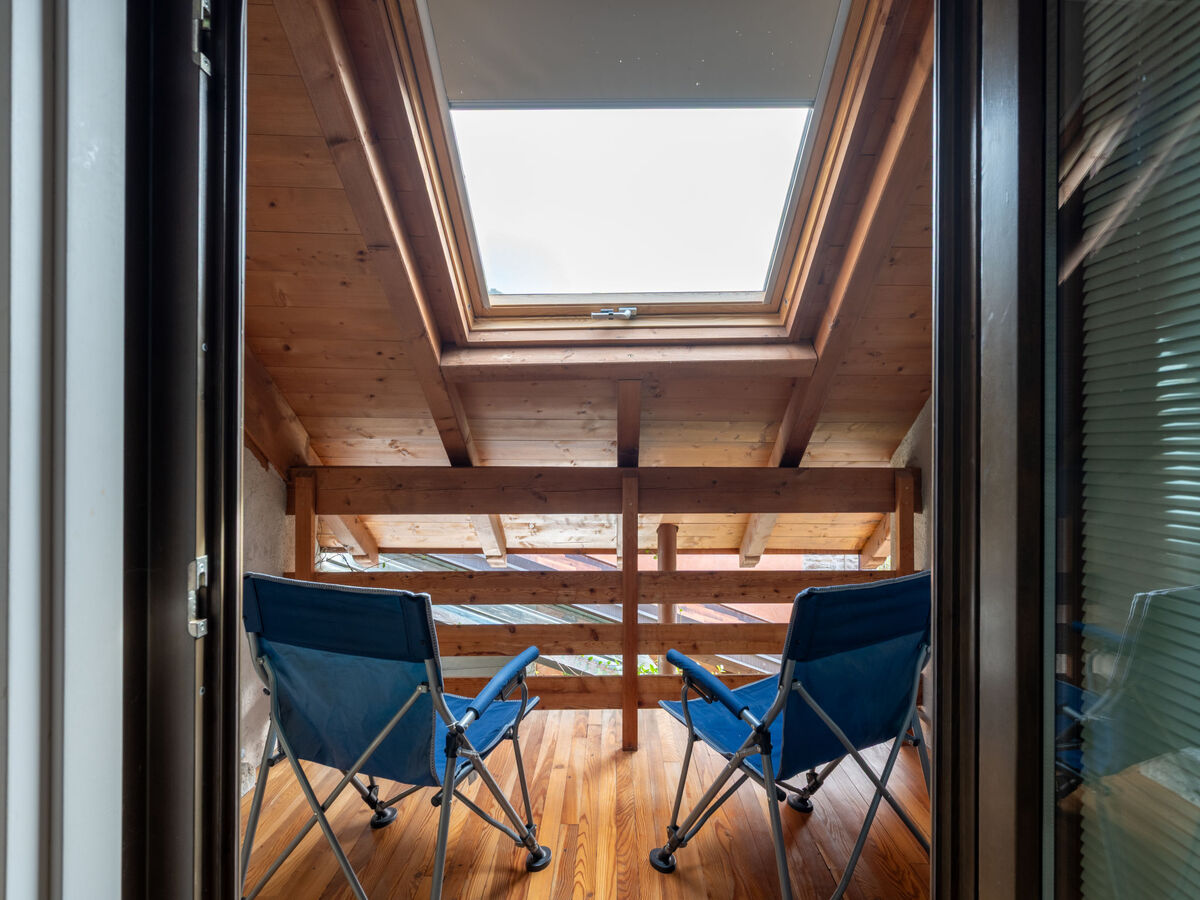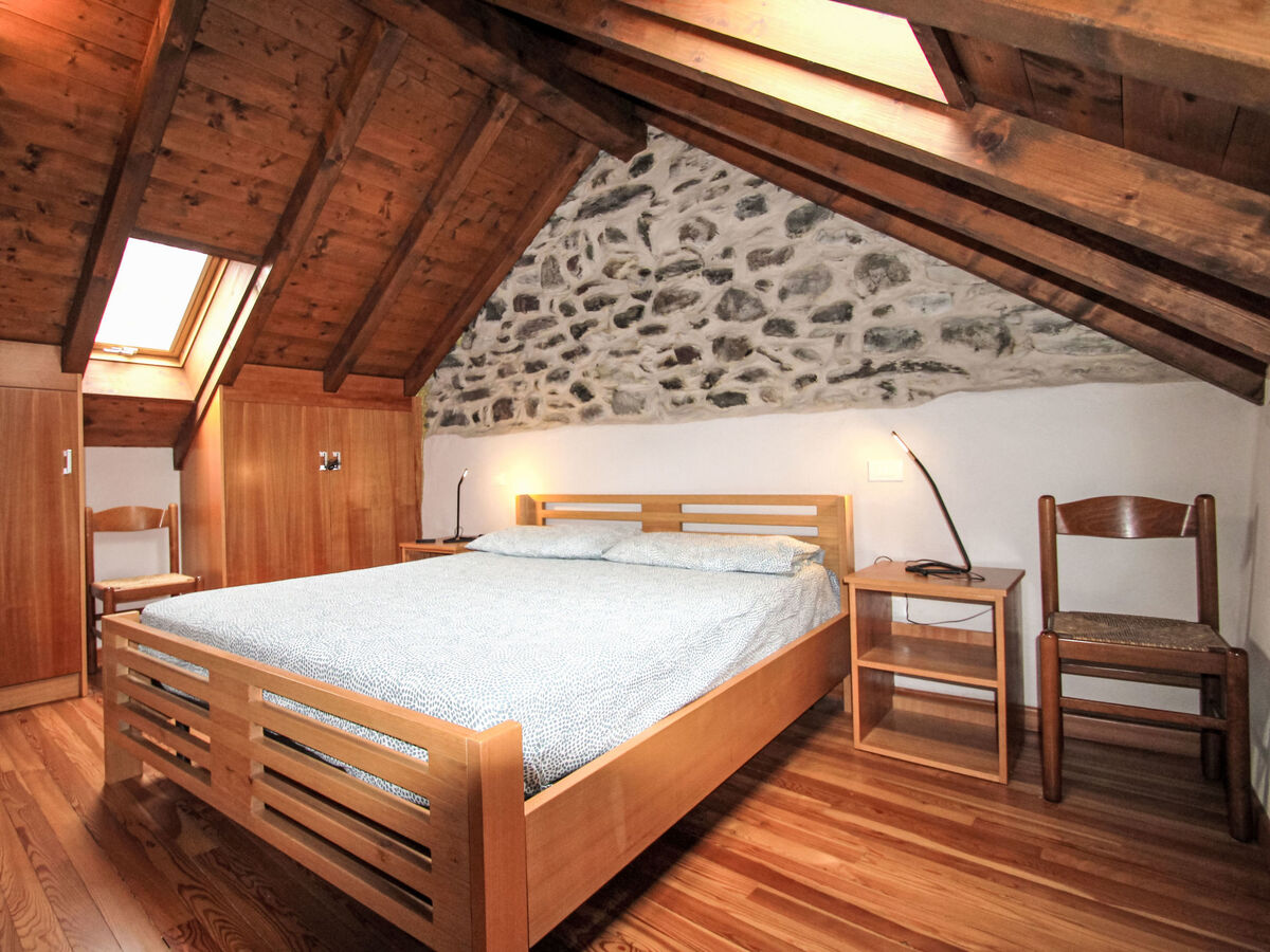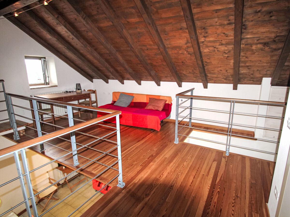 À l'étage supérieur: entresol mansardé, ouvert avec 1 divan-lit double (140 cm).