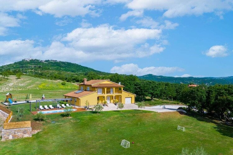 Cette maison de vacances a une superficie totale de 190m2 sur deux étages. Au rez-de-chaussée, il y a une cuisine entièrement équipée avec garde-manger et un salon conditionné à l'air avec table à manger. Il y a aussi une chambre pour les enfants avec des lits superposés et des toilettes.