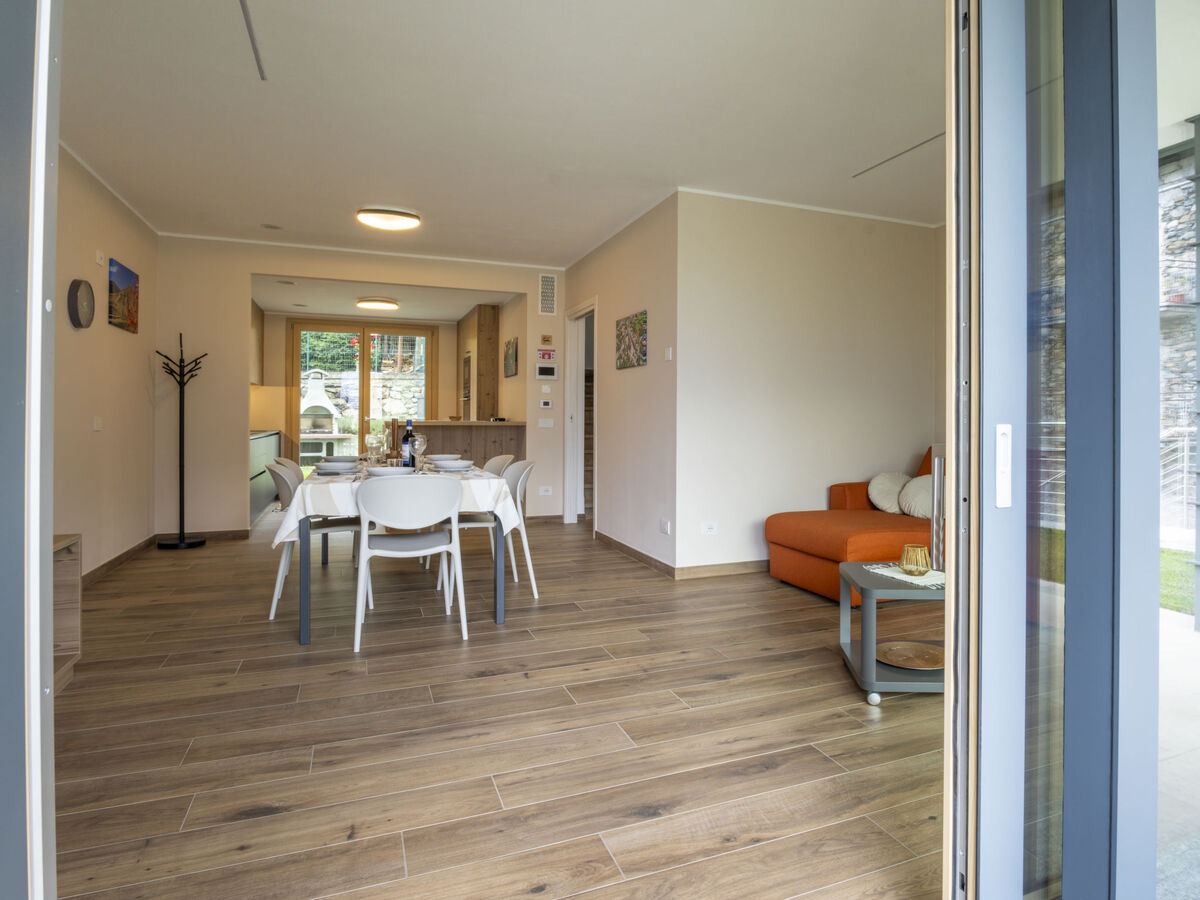 Spacieux et clair, aménagement confortable et agréable: grand séjour/salle à manger avec porte coulissante, baie vitrée avec 1 divan-lit double, table pour les repas et TV.