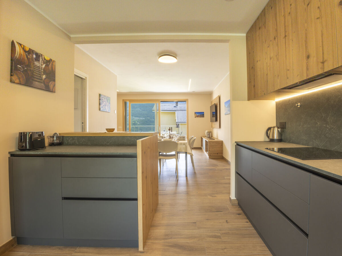 Coin cuisine (lave-vaisselle, 4 plaques à induction, grille-pain, bouilloire électrique, micro-ondes, congélateur).