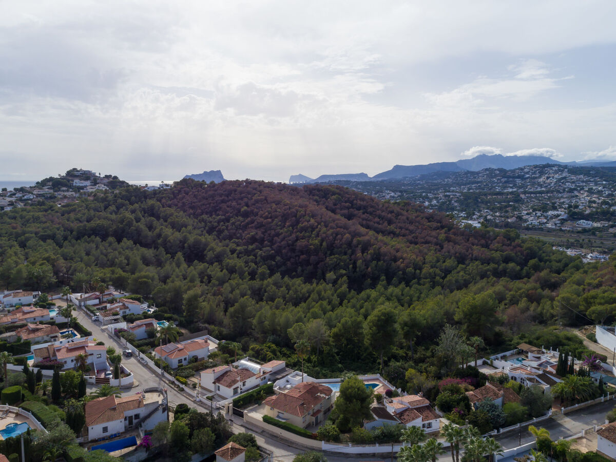 À 3 km du centre de Moraira, situation tranquille, ensoleillée, à 3 km de la mer, à 3 km de la plage.