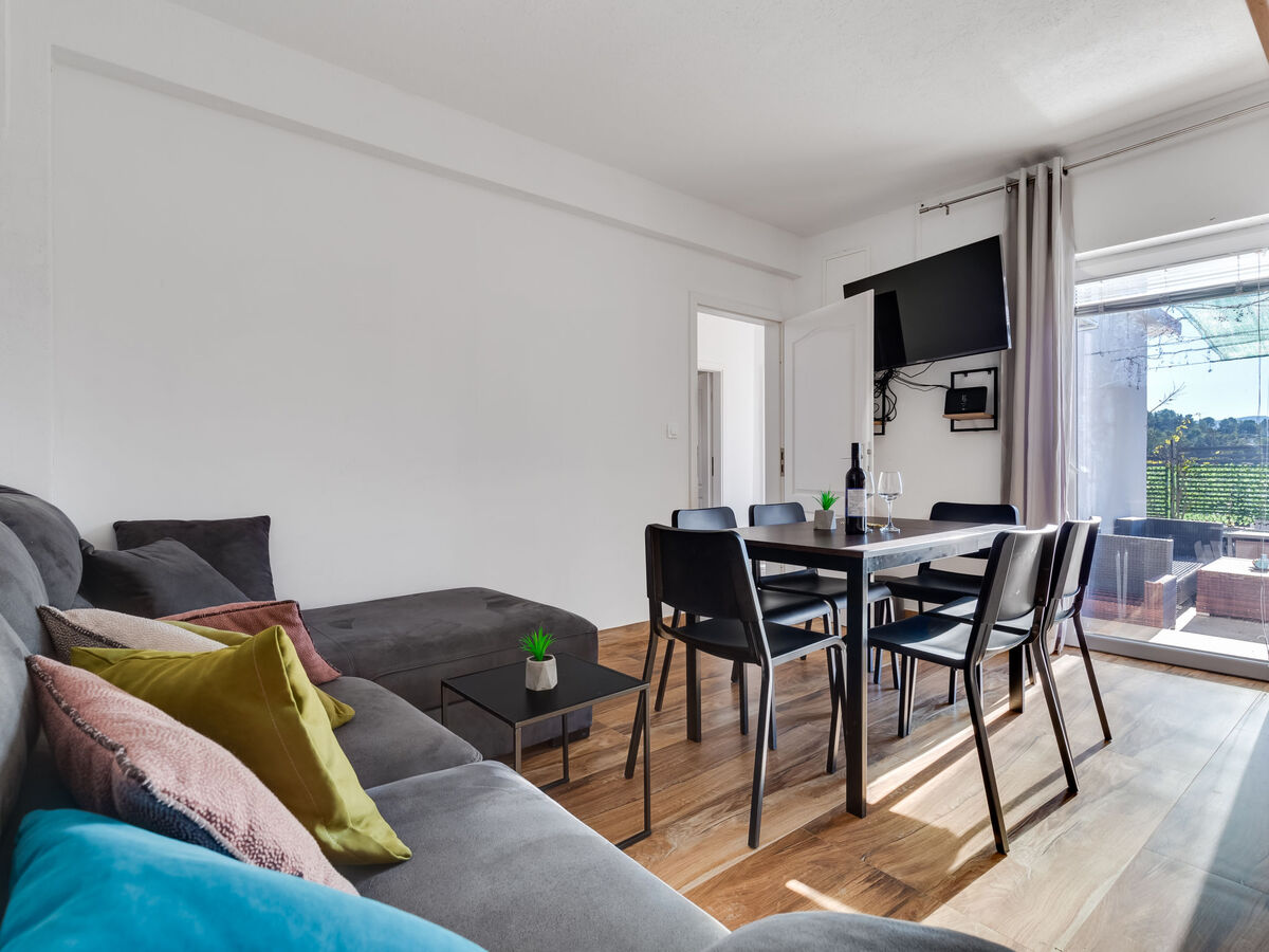 Séjour/salle à manger avec TV (satellite) (écran plat), air-conditionné.