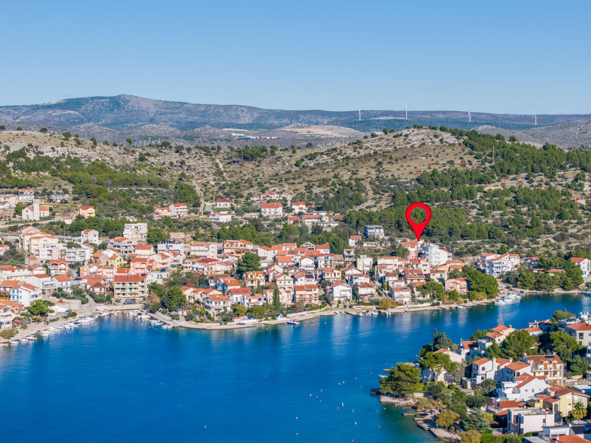 À 10 km du centre de Šibenik, situation ensoleillée, à 800 m de la mer, à 800 m de la plage, dans une rue.