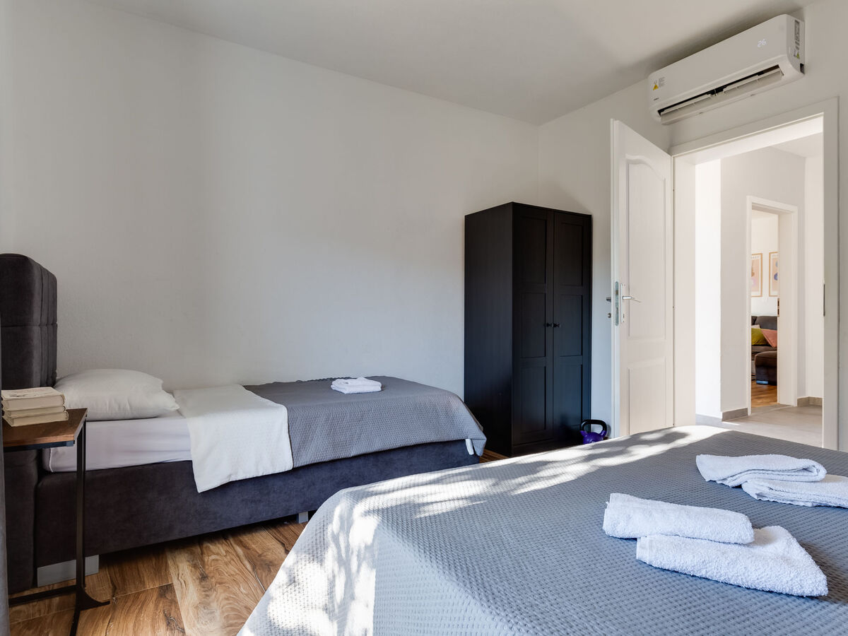 1 chambre avec 1 lit (90 cm, longueur 200 cm), 1 grand-lit (160 cm, longueur 200 cm), TV (satellite) (écran plat), air-conditionné.
