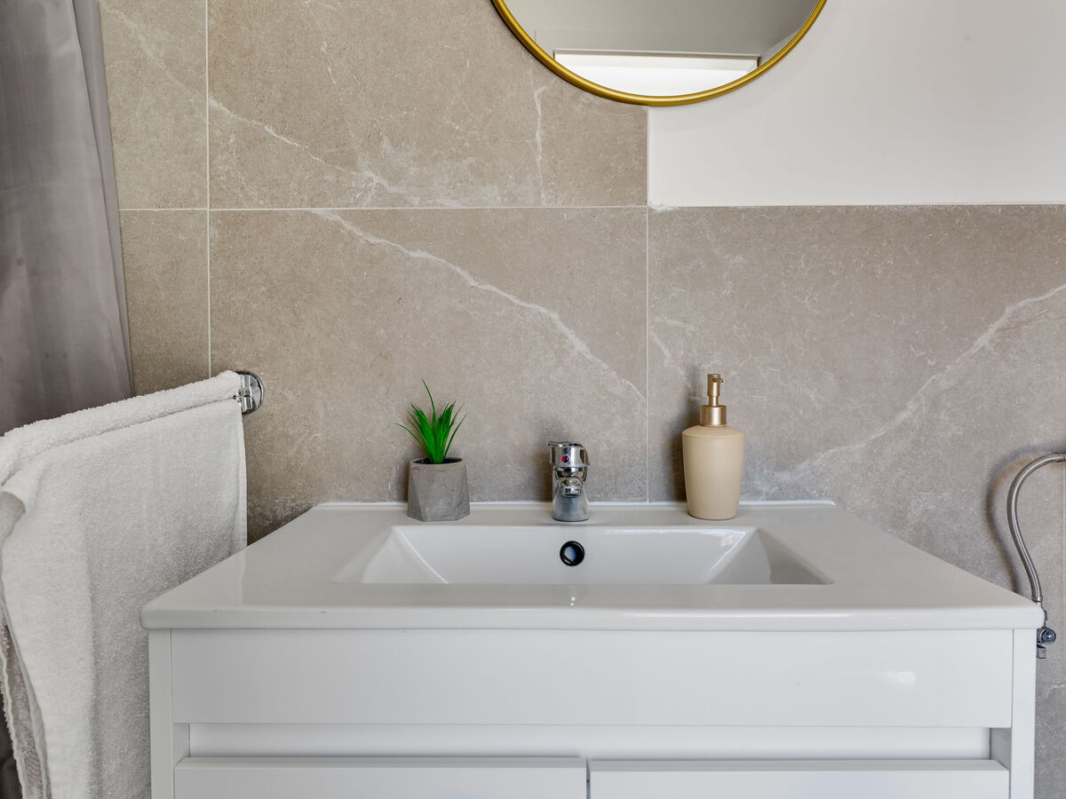 Douche extérieure, terrasse (20 m2), meubles de jardin.