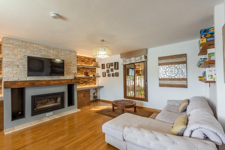 Rez-de-chaussée: (Entrée(accès par l'extérieur), Salle de séjour(canapé-lit double, TV(satellite), table, cheminée, coin salon, Lecteur DVD), cuisine(foyer(4 foyers, induction), bouilloire, grille-pain, hotte, cafetière/percolateur, four, micro ondes, lave-vaisselle , combinaison réfrigérateur/congélateur), salle de bains(douche, lavabo, WC, bidet), buanderie (lave-linge ), Accès Internet, équipements de jeux) Au 1er étage: (chambre(lit double(150 x 190 cm)), chambre(lit simple, lit simple, lit simple, lit simple), chambre avec salle de bains(lit double(200 x 200 cm), baignoire-douche, lavabo, WC, bidet, sèche-cheveux), salle de bains(baignoire, lavabo, WC, bidet)) Annexe Rez-de-chaussée: (Entrée, cuisine ouverte(foyer(2 foyers, induction), bouilloire, grille-pain, hotte, cafetière/percolateur, four, micro ondes, lave-vaisselle , combinaison réfrigérateur/congélateur), salle à manger-salon(TV(smart TV), table, cheminée, coin salon), salle de bains(douche, lavabo, WC, sèche-cheveux), climatisation, terrasse(privé, 25 m2), ) Annexe 1er étage: (chambre(lit double(150 x 190 cm)), climatisation, ) salle de bains(douche, WC), spa nordique, patio, chauffage(électrique), climatisation, terrasse, barbecue(charbon de bois), parking, piscine(privé, extérieur, 14 x 3 m., ouvert de Jan jusqu'à (inclus) Dec), chaise haute, table à repasser, fer à repasser