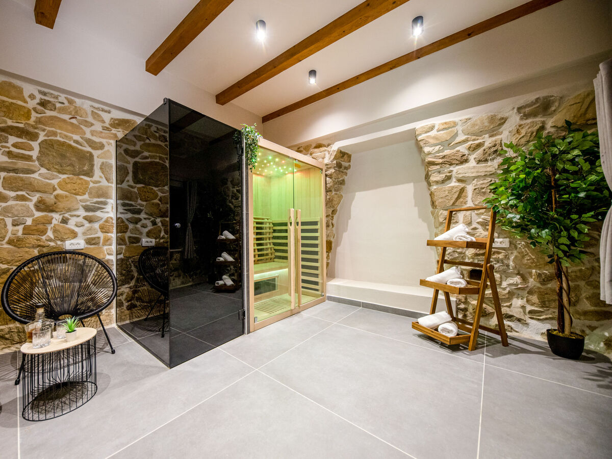 A usage privé: terrain 500 m2, piscine chauffée (6 x 3 m, profondeur 155 cm, disponibilité saisonnière: 01.Avr.