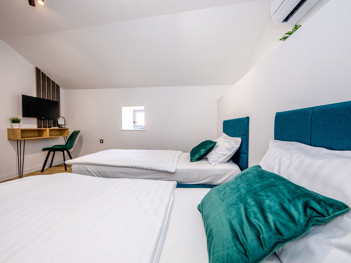 1 chambre, mansardée avec 2 lits (90 cm, longueur 200 cm).