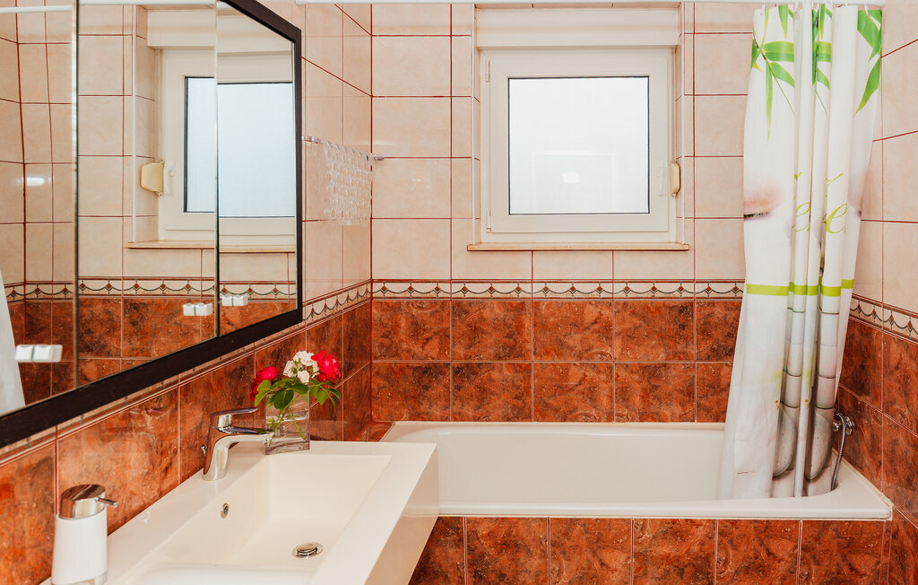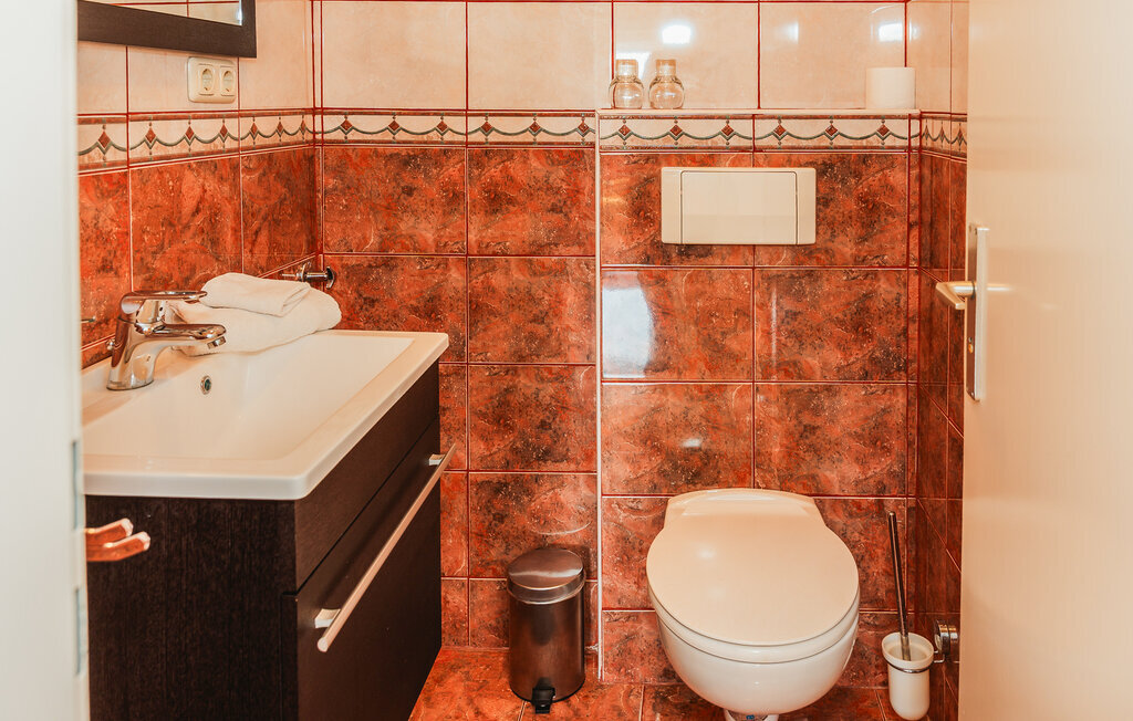 Toilettes: eau chaude/froide, Douchette et baignoire