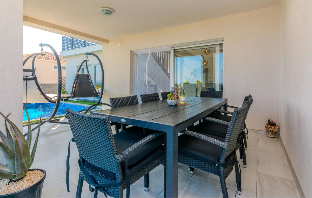 À l'extérieur, une piscine rafraîchissante vous invite à plonger et une terrasse spacieuse avec vue sur la mer vous attend. Commencez la journée par un copieux petit-déjeuner en plein air et laissez-vous dorloter par le soleil pendant que vos enfants s'amusent dans le jardin. Le soir, l'espace barbecue vous attire pour un barbecue convivial sous le ciel étoilé.