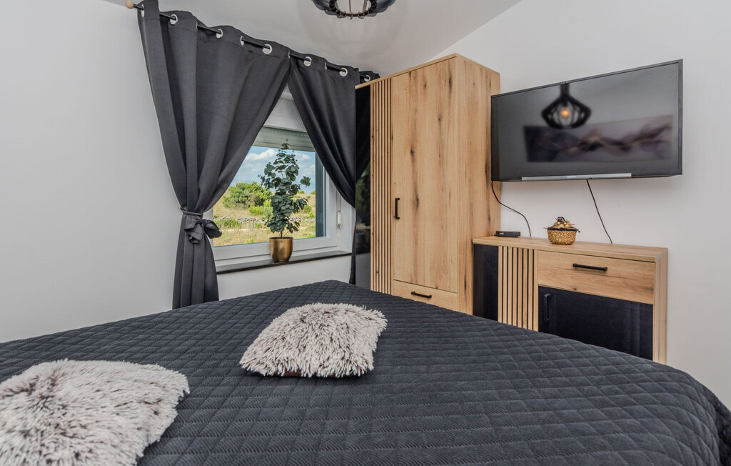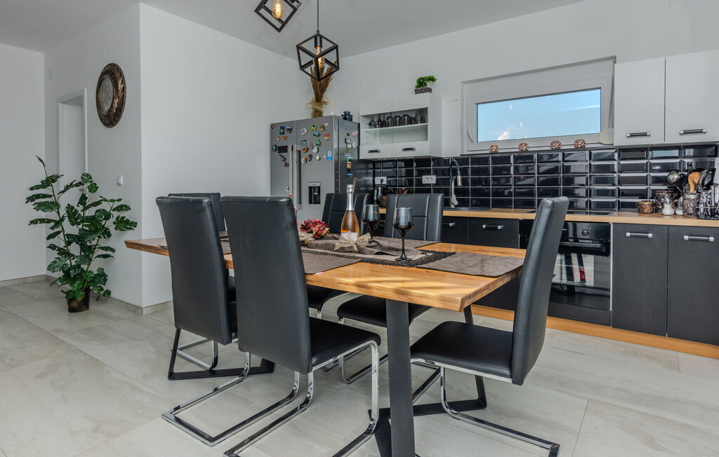 Cette maison de vacances moderne vous invite à passer un séjour inoubliable sur l'île de Vir grâce à ses pièces spacieuses et meublées avec goût. Célébrez des événements culinaires communs dans la cuisine ouverte et entièrement équipée et prenez place autour de la table à manger élégante. Après une journée active, vous pouvez vous détendre dans le salon confortable, regarder une série en streaming sur la télévision à écran plat ou jouer à un jeu de société passionnant.