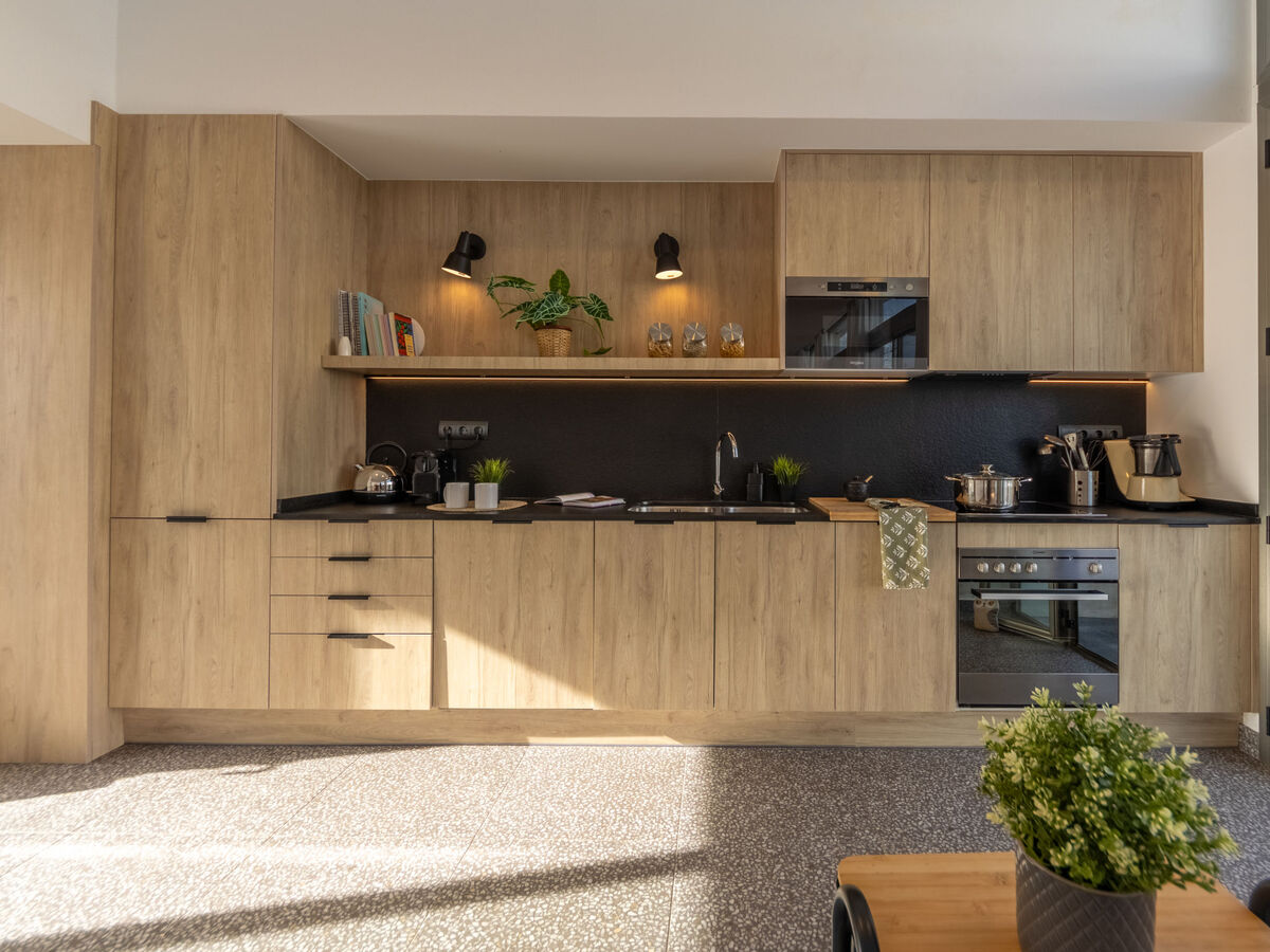 Cuisine ouverte dans l'entrée (four, lave-vaisselle, 4 plaques vitrocéramiques, grille-pain, bouilloire électrique, micro-ondes, congélateur, cafetière électrique).